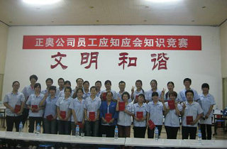 .為了促進(jìn)公司全體一線員工學(xué)習(xí)、掌握崗位應(yīng)知應(yīng)會(huì)知識(shí)和基本的崗位技能、行為規(guī)范,提升一線員工的綜合技能素質(zhì),正奧公司工會(huì)組織生產(chǎn)一線員工,在發(fā)放知識(shí)卡片、進(jìn)行全員書面測(cè)試的基礎(chǔ)上,選拔優(yōu)秀選手于9月14日晚開展了“應(yīng)知應(yīng)會(huì)知識(shí)競(jìng)賽”活動(dòng),本次競(jìng)賽根據(jù)生產(chǎn)工序共選撥7支參賽隊(duì),每隊(duì)由3人組成。通過(guò)必答、搶答、觀眾互動(dòng)等形式,根據(jù)各隊(duì)答題得分情況最終產(chǎn)生一、二、三等獎(jiǎng),公司領(lǐng)導(dǎo)為獲獎(jiǎng)選手們頒發(fā)榮譽(yù)證書和獎(jiǎng)金。